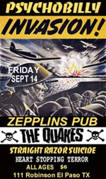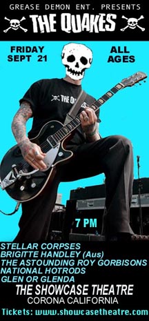 QUAKES SOUTHWEST TOUR SET LIST 1.Last of the human beings 2. 3 in 1 3.Paint it black 4.Thrills and sensations 5.Rocker 6.Animals 7.Cool to be a punk 8.What would they say 9.Youre Dead 10.New Generation 11.Revenge is mine 12.Lifetime to go 13. Psycho jekyll&Mr Hyde 14.Send me an angel 15.All messed up 16.USA Psychos Everything you are Pack our bags and go Stick to your guns Ice cold Baby Beer & Cigarettes |